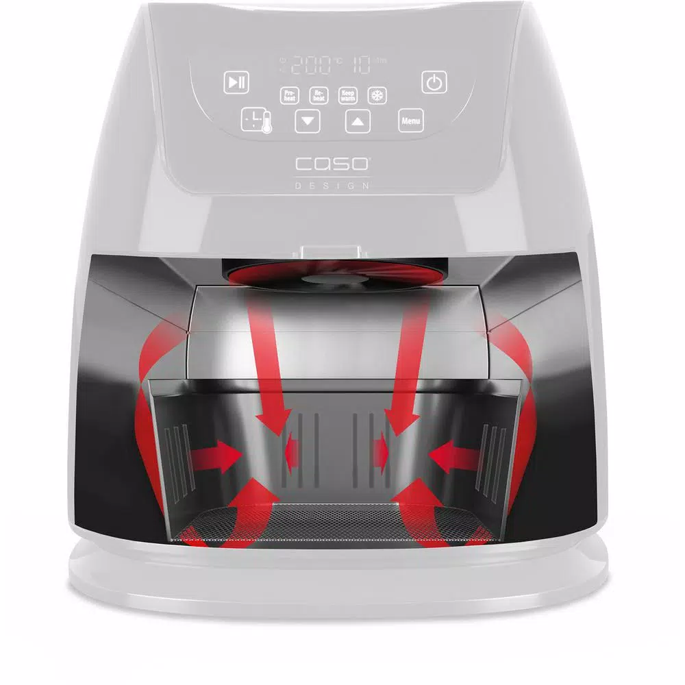 - Convection air fryer with caso’s proprietary hot-air circulation technology