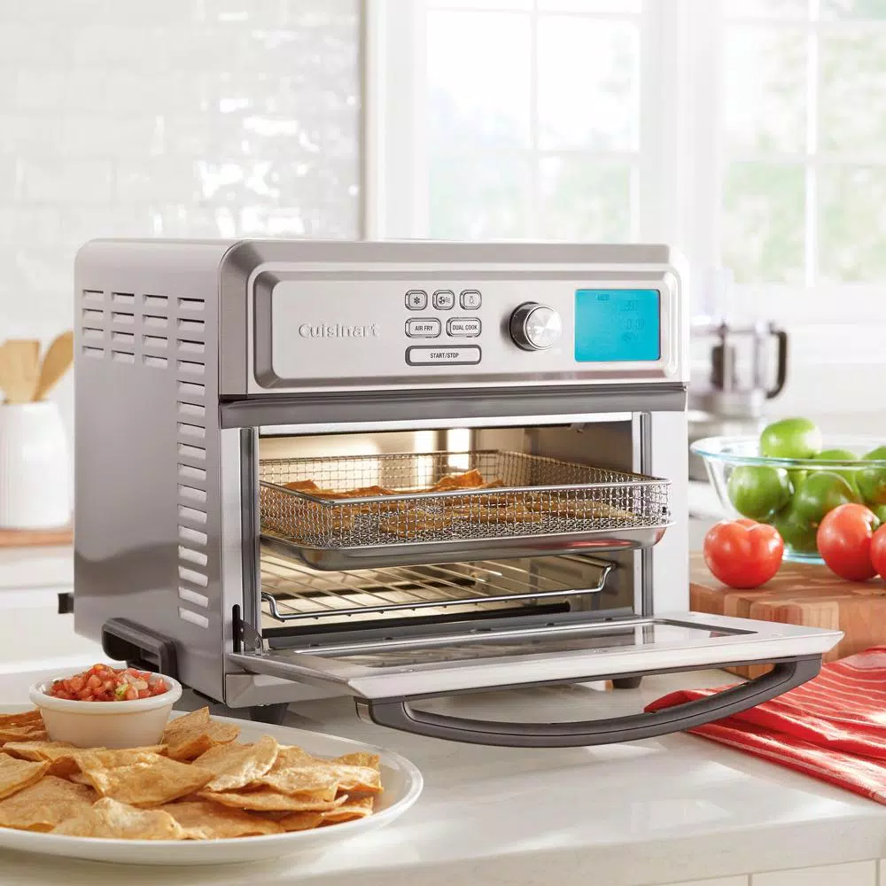 Cuisinart makes AirFrying easier than ever, with presets to perfectly fry favorites like wings, fries, chicken nuggets, snacks and veggies. Frying with air instead of oil is delicious and guilt-free, and this large capacity oven fries up to 3 lb. at once. It also offers all the great features of a full-size toaster oven. And thats not all. Unique to the Cuisinart Digital AirFryer Toaster Oven is a range of low temperatures that lets users proof dough, dehydrate foods and more, taking multifunctionality to a whole new level. With the large digital display and intuitive programming options, selecting presets, temperature, time, and function have never been easier.