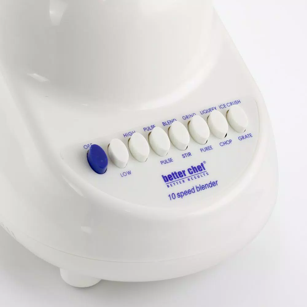 The Better Chef 10-Speed Blender features 8-continuous speeds plus 2-pulse speeds to allow for mixing, whipping and chopping. The powerful motor has the ice crushing strength that will blend most ingredients with ease. The large capacity glass jar ensures you can blend whatever you need. The removable filler cap lets you add ingredients easily.
