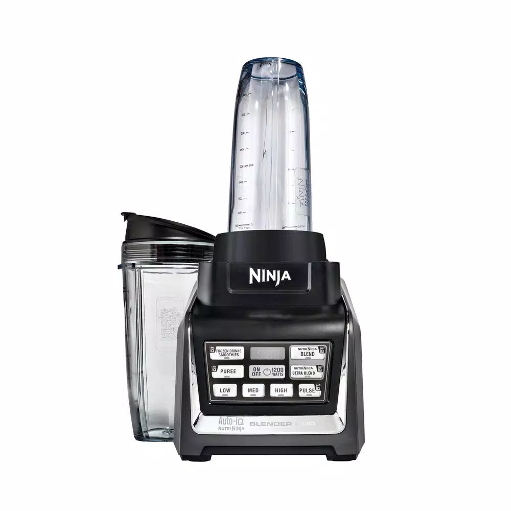 The Nutri Ninja Blender Duo with Auto-iQ takes the guesswork out of drink making. Auto-iQ Technology features intelligent programs that combine unique, timed pulsing, blending and pausing patterns that do the work for you. The digital countdown timer displays how much time is remaining on the selected Auto-iQ program, or counts up to track blending time when using the three manual speeds. Combined with Nutri Ninja Pro Extractor Blades, Auto-iQ breaks down whole fruits, vegetables, ice and seeds for maximum nutrient and vitamin extraction. Regular and Jumbo Multi-Serve Nutri Ninja Cups with Sip and Seal Lids allow you to make nutrient-rich Super Juices to take on-the-go. Total Crushing Technology delivers unbeatable professional power. Ninja Auto-iQ combined with the XL 72 oz. blender’s Total Crushing Blades pulverize ice to snow in seconds for creamy frozen drinks and smoothies for the whole family. 1300-Watt/10.83 Amp/120-Volt.