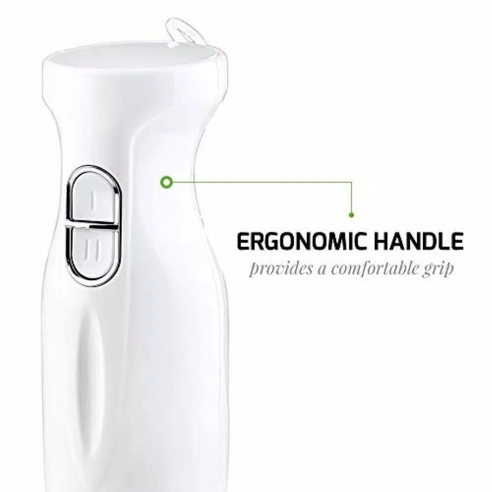 Witness ease convenience and versatility at work—right in your own kitchen. Discover a new world of innovative cooking possibilities with the Ovente HS560 Handheld Immersion Blender It makes blending and mixing any soft foods a pleasure because it makes it SO easy and effortless that it might even be fun! Its lightweight body along with its ergonomically-designed non-slip handle is so comfortable to hold and control that cooking won’t ever feel like a chore again. Whip up all of your favorite gourmet soups guacamole smoothies/shakes cake batter salsas sauces marinades salad dressings or even homemade baby food for your precious bundle of joy with just one press of a button Powered by 300-Watts and a heavy-duty motor it works quickly and effectively—expertly mixing anything you desire into a smooth evenly-mixed medley of mouth-watering flavors. Its Slim-Stick design enables this hand blender to fit into any mixing bowl pot beaker or cookware without restriction It’s compact enough to fit anywhere but powerful enough for the toughest blending jobs It was also carefully designed to come apart easily so that clean up and storage is no problem Simply take apart then hand wash the shaft or place into the dishwasher and let dry. The body can simply be wiped clean with a soft damp cloth. NOTE TO PREVENT OVERHEATING OPERATE THE HAND BLENDER IN ONE MINUTE INTERVALS OR LESS