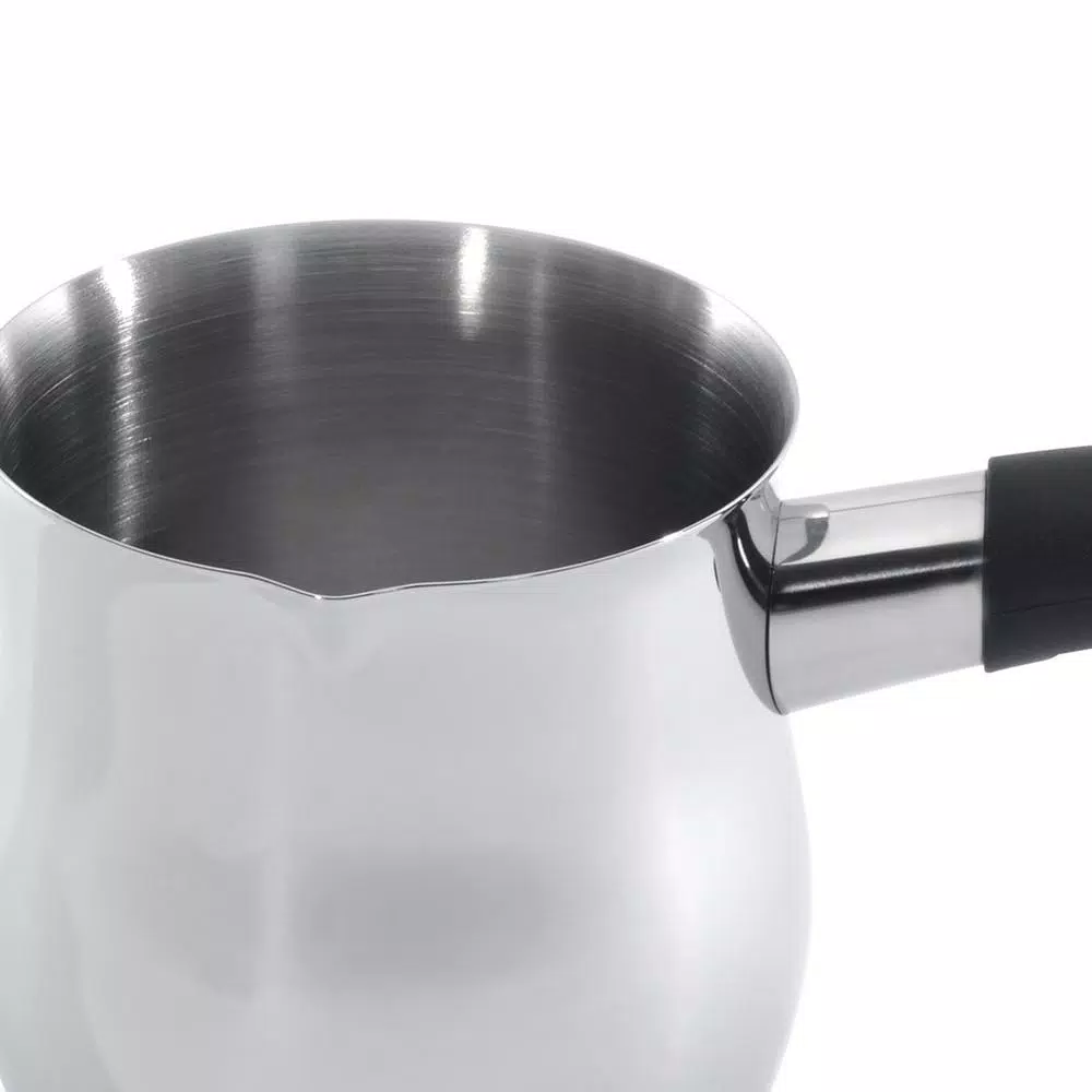 Attractive stainless-steel espresso pitcher, ideal for frothing milk to make cappuccinos and lattes. Pronounced curve shape for an amazing result. Long stay-cool handle keeps the hand away from the heat. Special lip for drip-free pouring. Dishwasher-safe.