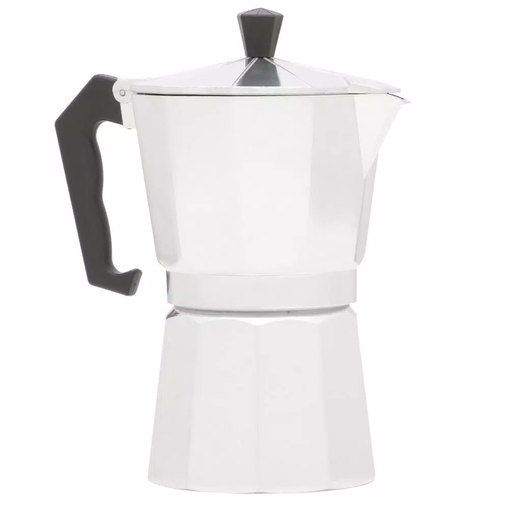 - Aluminum espresso maker with 6-cup capacity
