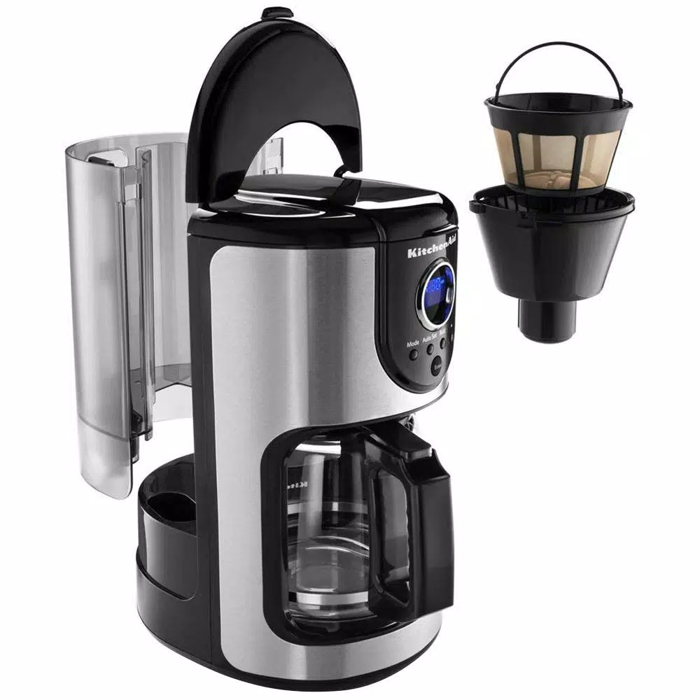 Program your brew up to 24 hours in advance with the KitchenAid KCM111OB 12-Cup Coffee Maker. The 1 to 4 cup brew cycle option automatically adjusts the brewing process to optimize the saturation time for maximum flavor and not water down your coffee. It includes a combination of the shower heads and a flat-bottom brew basket to evenly saturate the coffee grounds for uniform extraction and maximum flavor. The removable water tank that is easily accessible and includes printed water level indicators that make it easy to fill and it is dishwasher-safe.