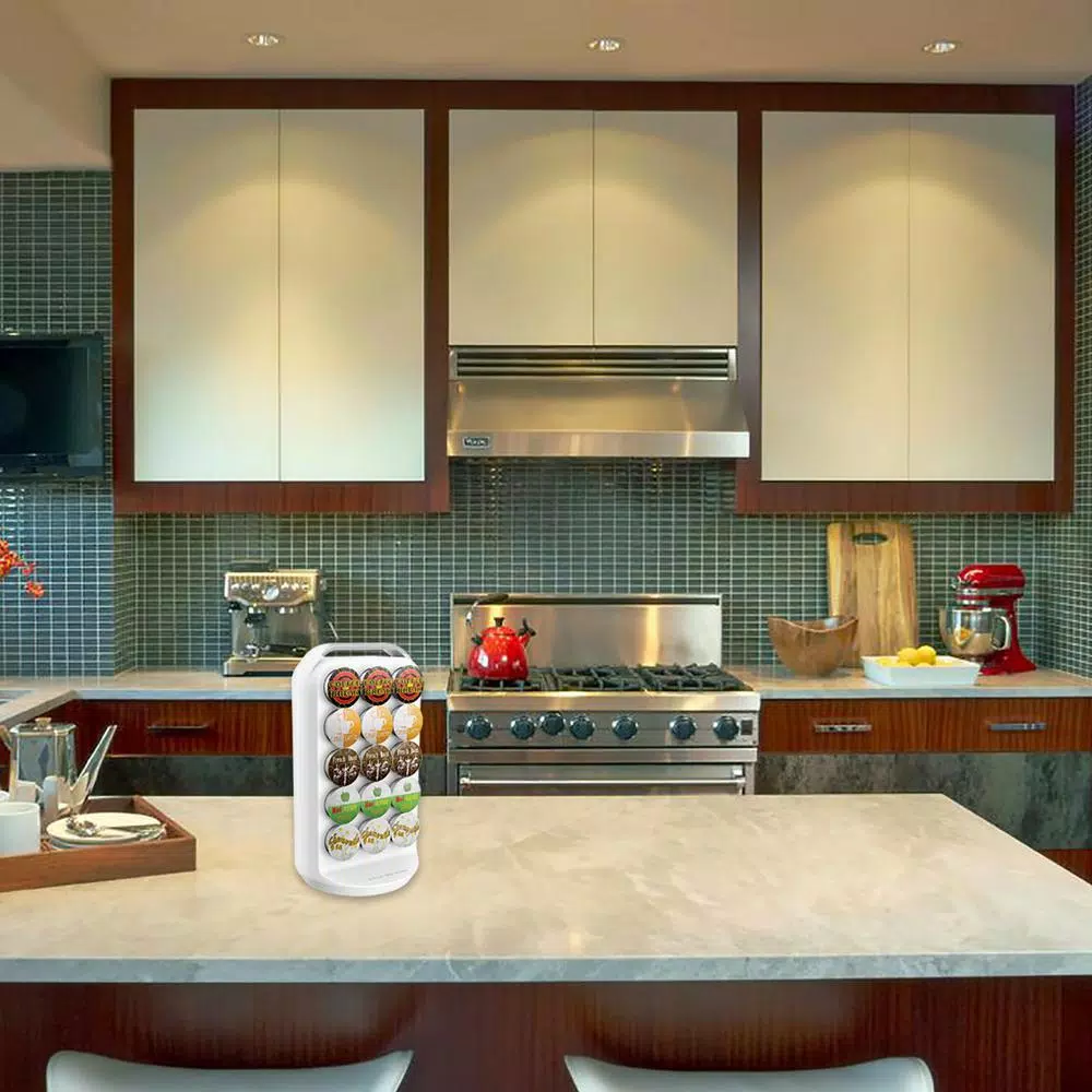 - Holds up to 30 single-serve coffee pods in one convenient location