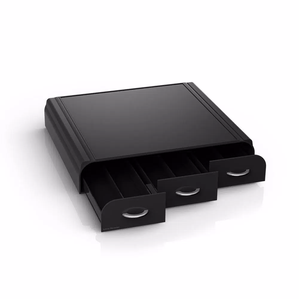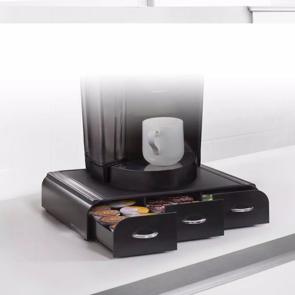 The K-Cup Anchor is a versatile storage system. It will revolutionize the way you store your K-Cups. The Anchor boasts a patent-pending, heat-resistant panel so that you can place your coffee machine directly on top of the storage unit, maximizing counter space while minimizing mess.