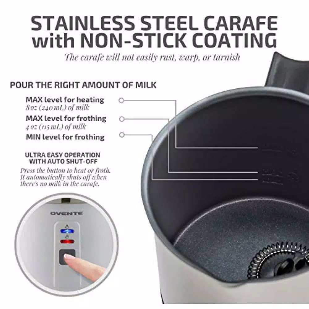 - Heater and frother in one the ovente deluxe milk frother come with two whisks for heating and frothing milk it can whip up both hot or cold foam and heat milk, giving you endless options for your caffeine game with this, you can spice up regular beverages and turn it into unique creamy creations, from early morning espressos to late-night hot cocoas