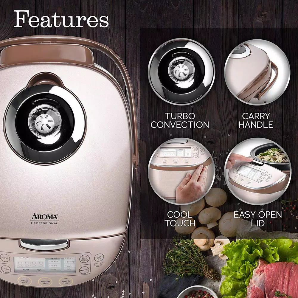 Cooking Great meals shouldn’t be a chore. With aroma professional Turbo convection 16-cup rice cooker and multicooker being the household chef couldn’t be easier. Don’t be fooled that this appliance is only a rice cooker as it also functions as a multicooker and it is just the beginning to creating other flavorful dishes with the added features of saute-then-simmer (sets), slow cook, porridge, grains, soup and even cake. For a healthier alternative, The provided steam tray allows for healthy steaming of meats and vegetables, even as rice cooks below, Need rice in a pinch. The quick rice feature is great for a time saving option. Or plan ahead with the 15-hour delay timer is perfect for families on the go, delivering delicious rice ready when it’s needed. And when the cooking is done, the inner cooking pot and all accessories remove for easy cleanup in the dishwasher.