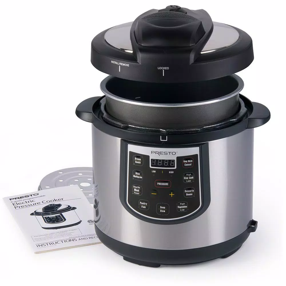 Fast and easy automatic pressure cooking. Just set and forget. Settings for high pressure, low pressure, slow cooking, browning, sauteing, and keep warm. 12 presets for the most popular foods plus manual settings for everything else. Cooks up to 70% faster than ordinary cooking methods. Saves time, energy and money. Flavorful meals featuring meat, fish, chicken, vegetables, and rice cook to perfection in minutes. Great for desserts too. Timer with LED display countdowns remaining cooking time. High speed pressure cooking preserves flavors and nutrients. Even tenderizes lean cuts of meat. Cover locking system allows pressure to build only when the cover is securely closed and prevents the cover from being opened until pressure is safely reduced. Removable pot with nonstick surface inside and out for easy cleaning. Dishwasher safe? Includes cooking rack and complete instruction/recipe book. Special rack for cooking several foods at once with no intermingling of flavors or odors.