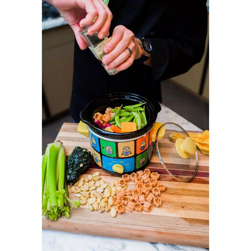 As cute and compact as a Minion, this handy 2-quart slow cooker fits on any counter top. Throw in ingredients for soups, stews, or casseroles in the morning and have a great meal waiting for you in the evening. The tempered glass lid makes for easy monitoring and the removable stoneware insert serves as a serving bowl. Easy to clean, easy to store, theres nothing despicable about this slow cooker!