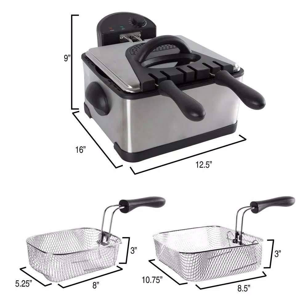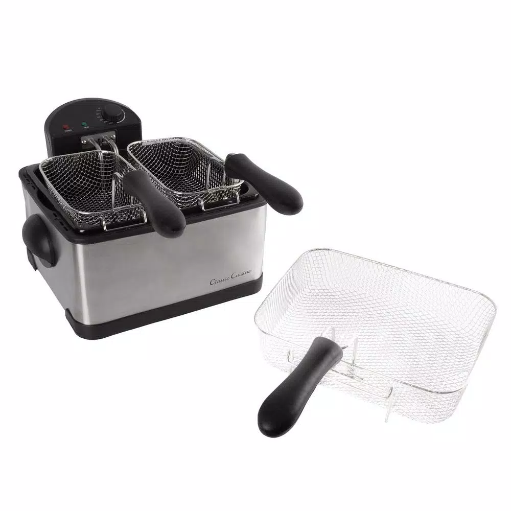 This Electric Deep Fryer with 3 Baskets by Classic Cuisine makes dining on your favorite crispy restaurant starters and finger food appetizers at home simple and delicious. This stainless steel deep fryer effortlessly saves time by creating your favorite mouthwatering fried chicken recipe in one basket while crisping French fries in the other basket. Conveniently, this fryer also includes an optional large basket to create a party-sized plate of battered or breaded snacks for the entire family to enjoy- all from the comfort of your own kitchen.