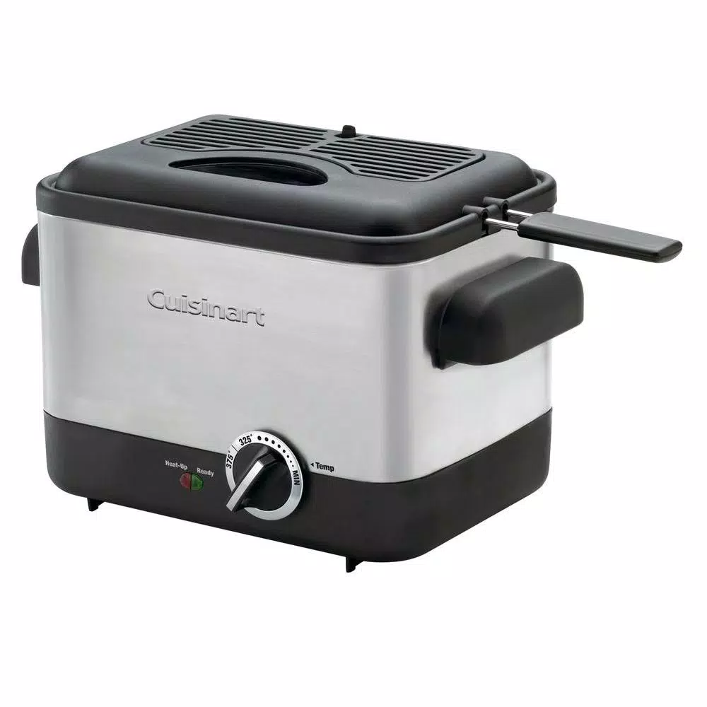 The Cuisinart CDF-100 Compact Deep Fryer is a deep fryer that takes up less counter space. Designed to fry batches up to 3/4 of a lb. in just 1.1 l of oil, this is a great deep fryer even for spur-of-the-moment snacks and meals. The compact design allows creative cooks to prepare fried calamari to top a salad, and moms to fry up mozzarella sticks for kids. Temperatures up to 375°F and a die-cast frying bowl maintain selected oil temperatures for restaurant-quality results. Easy-to-use, Easy-to-clean, and simple to store, it could make deep frying an everyday event.