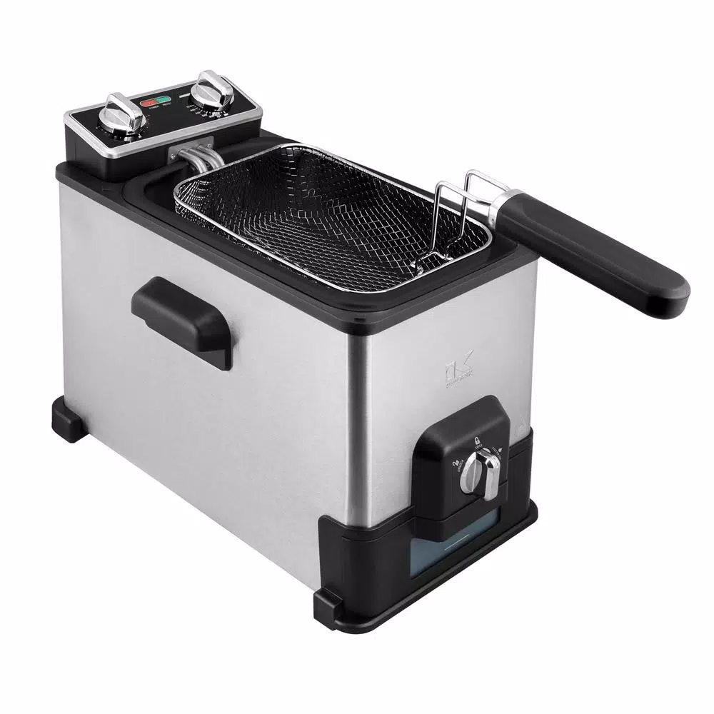 Prepare your favorite foods with the Kalorik XL Deep Fryer with Oil Filtration. The unique oil filtration system cleans and drains the oil for future use. The filtered oil is contained in a separate container for easy use by just the turn of a dial. The Kalorik XL Deep Fryer features time and temperature control up to 375F / 190C. The 4.2 Qt. /4 L / 18 Cups capacity is ideal for families or larger meals.