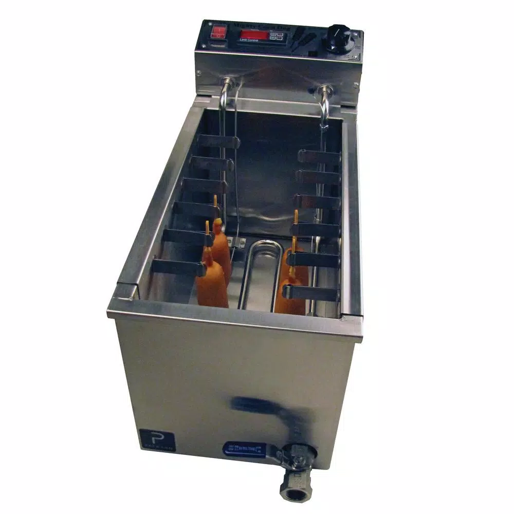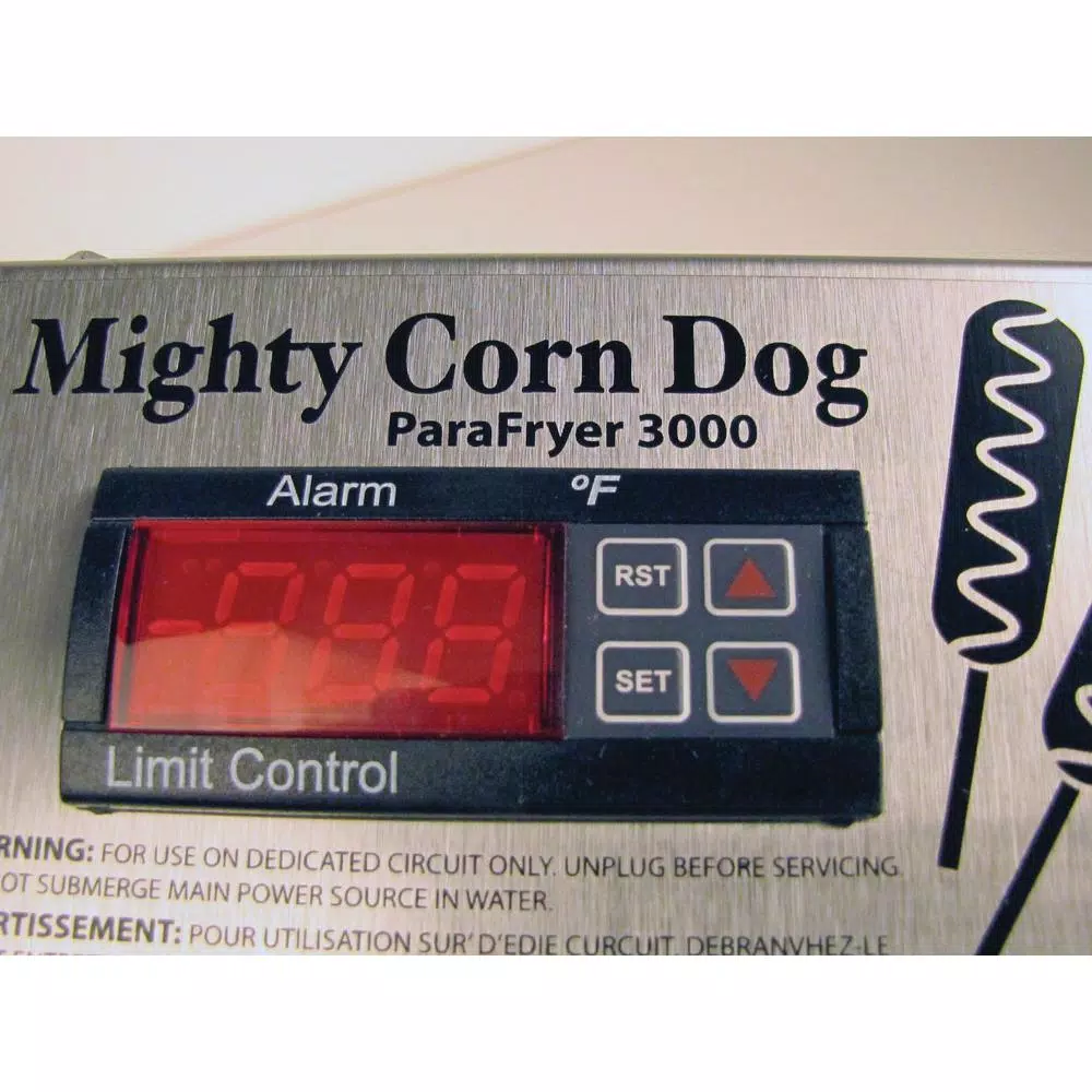 Fry corn dogs and other delicious foods on a stick with the Paragon 9050 Para Fryer 3000 corn dog fryer. This unit is lightweight and portable, making it ideal for carnivals, fairs, or concession stands. It holds 37.5 lbs. of oil and cooks up to 12 items at once, allowing you to serve a large number of customers efficiently, while boldly marked minimum and maximum oil lines reduce cooking mistakes and help operators work quickly.