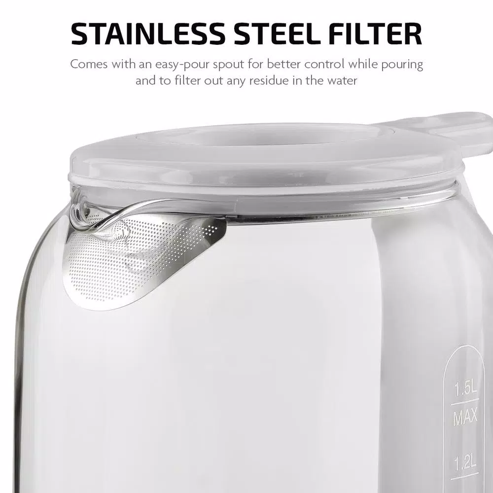 - Elegant – Made with high-quality heat-tempered borosilicate glass, the KG516 Glass Electric Kettle’s classic design stays sleek and exquisite after years of use; a definite need in your modern kitchen. It’s illuminated by a beautiful halo of blue LED lights that turn on whenever the kettle is boiling, and it has a rotary base that swivels 360° with built-in cord storage making it look classy on your kitchen countertop or dining room table.