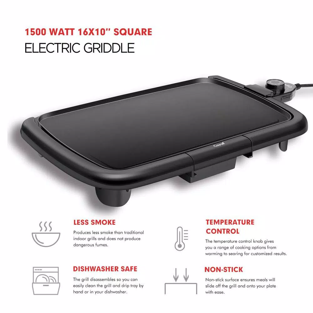 - Extra-Large Capacity: 16X10 inch large serving cooking area is perfect for family-size meals, offers around 200 square inches of griddle surface for all your breakfast favorites.