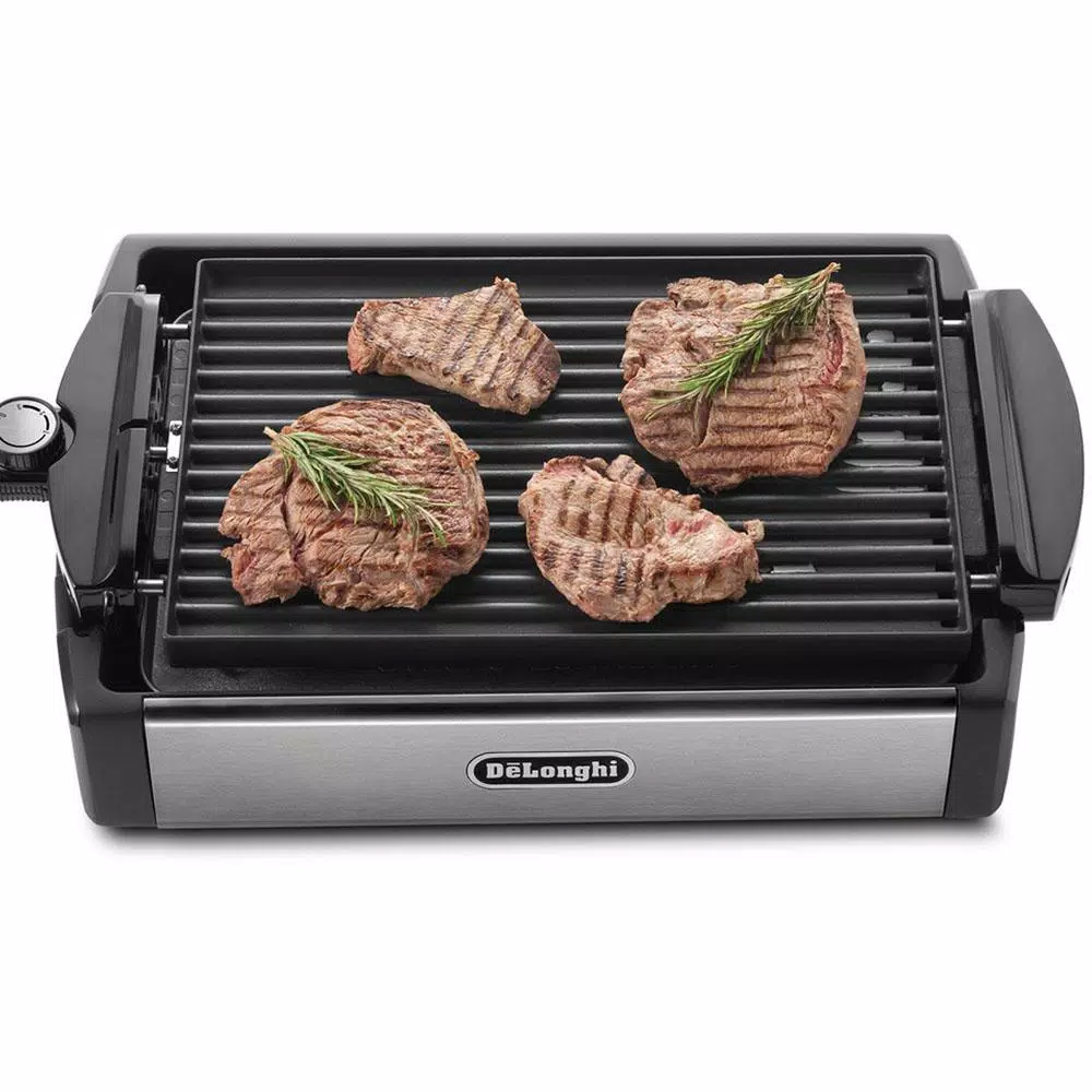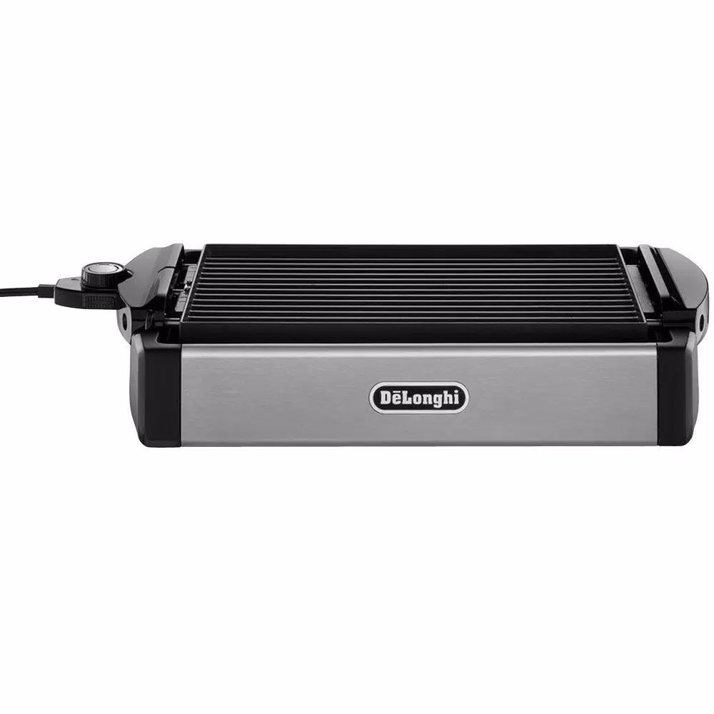 Enjoy healthy grilling any time with DeLonghi’s BGR50 Indoor 2-in-1 Reversible Grill and Griddle. The large, reversible 14.9 in. x 9.4 in. heavy-duty, die-cast aluminum grill/griddle plate has an embedded heating element for rapid and even cooking. The grill (ribbed side) is ideal for grilling steaks, chops, burgers, fish and more while the griddle (flat side) is ideal for cooking seasonal veggies, eggs, pancakes and bacon. The non-stick surface and fat collector tray promotes healthy cooking. Plus the grill/griddle plate has cool touch handles and is dishwasher safe for easy cleanup.
