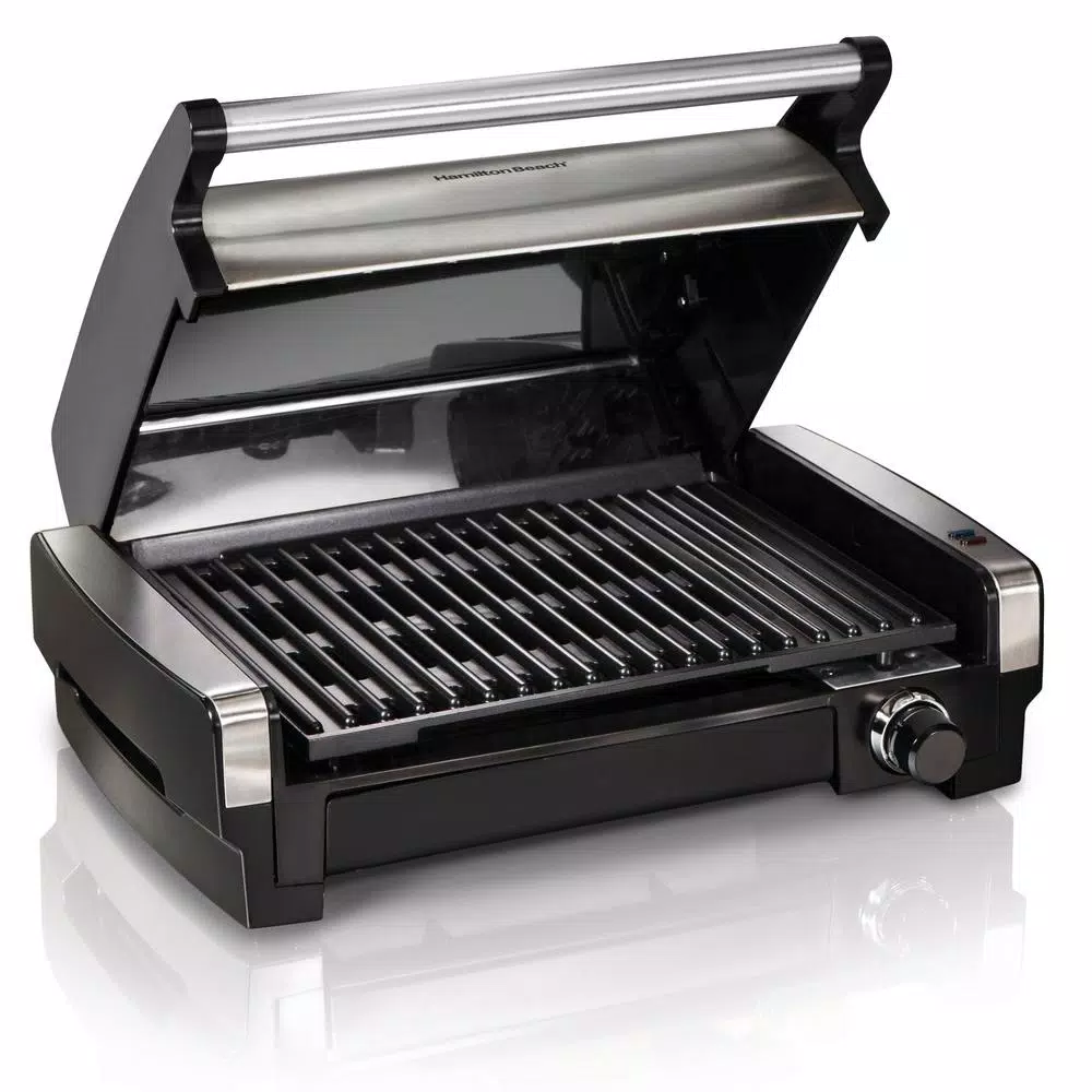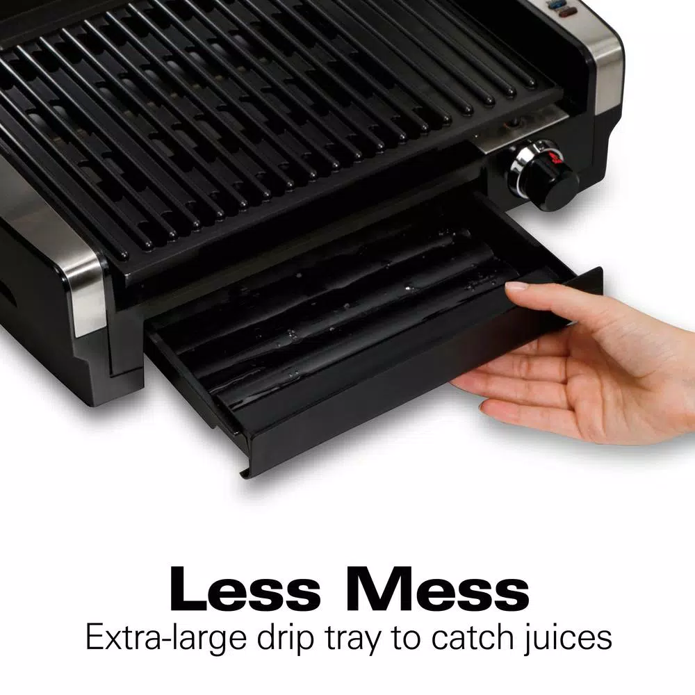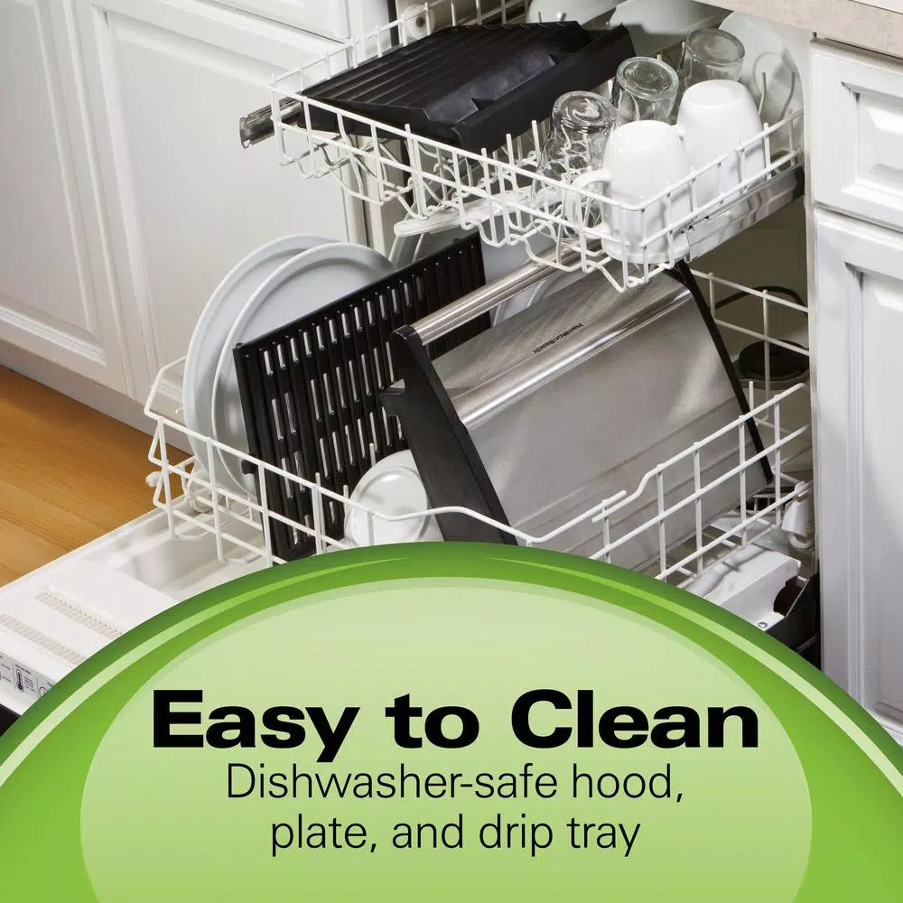 Enjoy outdoor grilled flavor anytime you want, regardless of the weather. The Searing Grill’s high-heat searing temperature locks in juices and flavor, giving your meat better taste, texture, and appearance. Unique hooded design helps keep in flavor to give your food that authentic outdoor grilled taste. There’s no messing with propane, charcoal, or lighter fluid, so cooking couldn’t be easier. Simply plug it in and turn the temperature dial all the way up to sear. When it reaches the high-heat searing temperature of 450 degrees, the green preheat light will glow. Now you’re ready to sear steaks, burgers, pork chops, or fish fillets to perfection. If you want to grill food that doesn’t need to sear first, the Searing Grill has an adjustable temperature dial for lower heat.