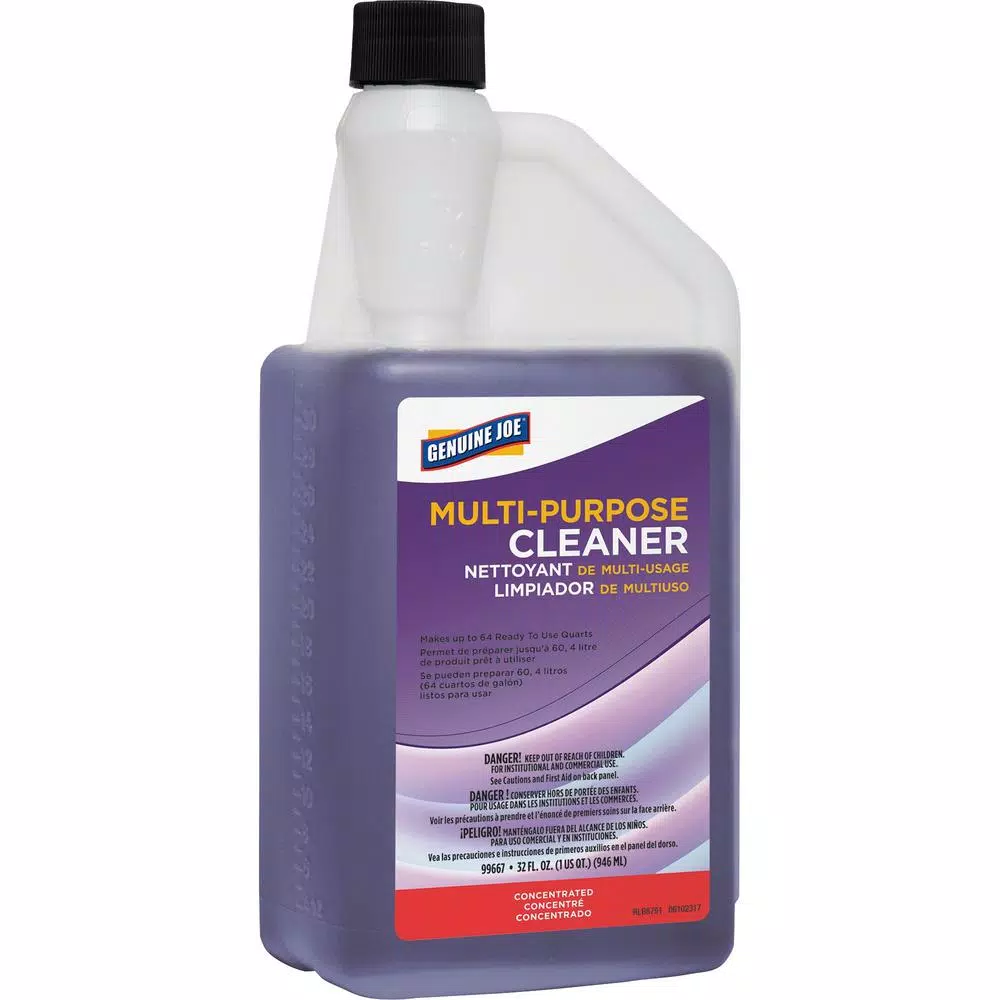 Multipurpose cleaner is environmentally recognized for reduction of carbon footprint. It makes up to 64 ready-to-use quarts per the 32 oz. portion-control bottle. Concentrated cleaner cleans and deodorizes in 1 step with a powerful and long-lasting lavender fragrance. It is safe on most all washable surfaces. It is effective on multiple soil challenges. It is also effective in hard water and will suspend the toughest soils. Liquid cleaner is formulated without butyl or inorganic phosphates. It includes a built-in measuring cup for precise and no-spill use. The dilution ratio is 1:64 (2 oz. per Gal.).