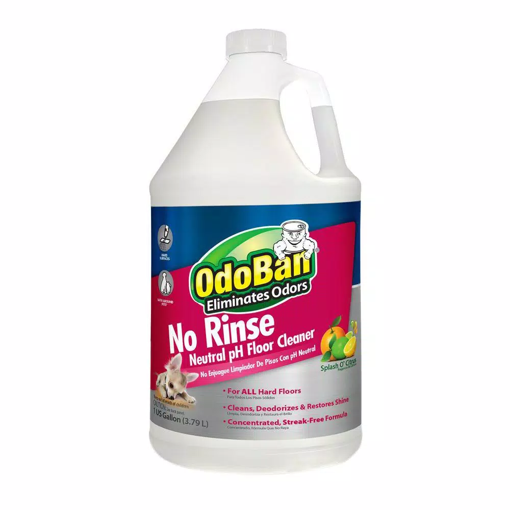 The OdoBan No-Rinse Neutral pH Floor Cleaner was formulated with a naturally derived surfactant system that safely and effectively cleans your floors and other surfaces without harmful chemicals. It removes soils, odors from urine, vomit, feces, blood and dirt, making it great for use in homes with pets. It leaves surfaces shining and streak-free.