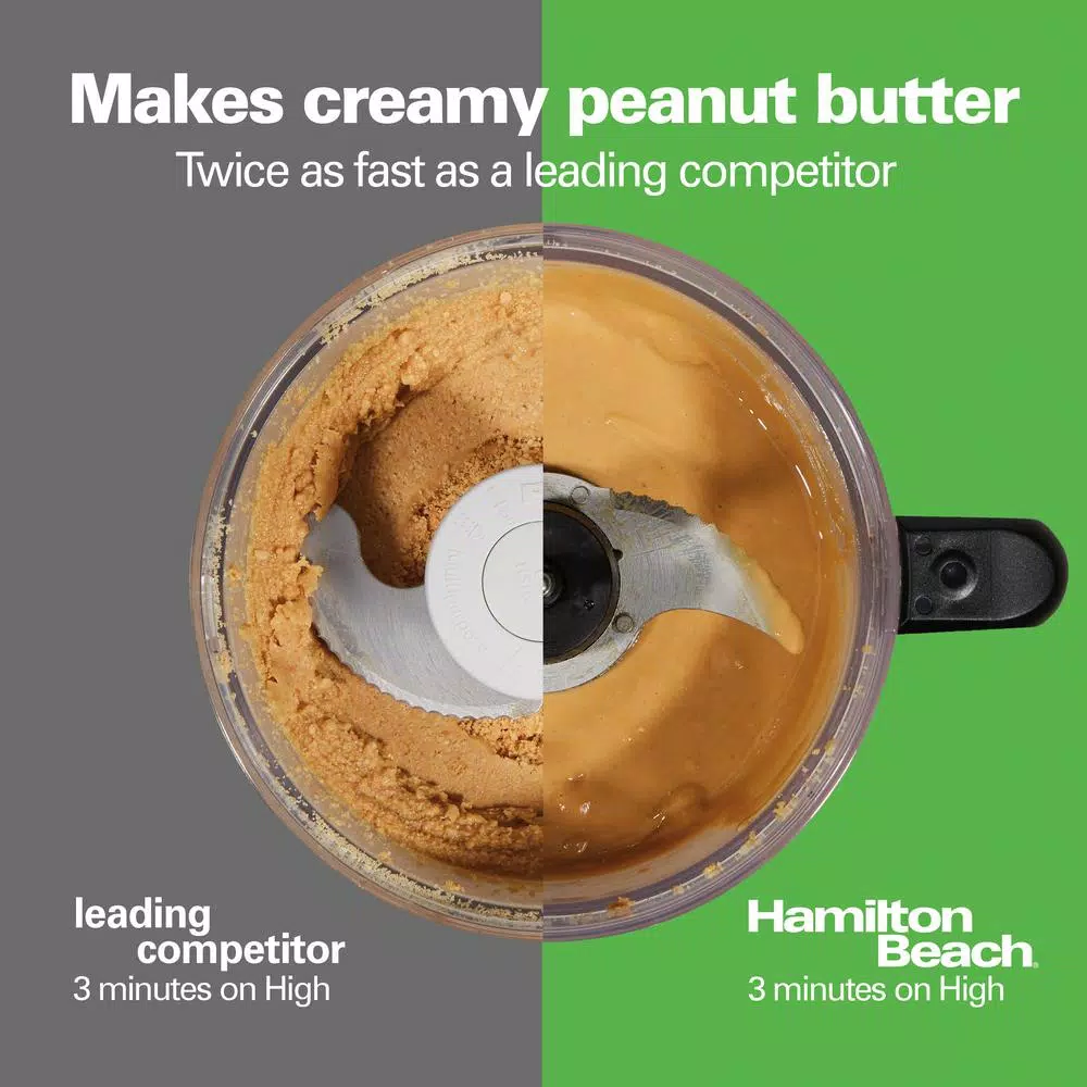 Make everything from salsas to nut butters with the versatile Hamilton Beach Stack & Snap Food Processor. Fast, easy and quiet to use, this food processor lets you chop, puree, slice, shred and knead dough. It’s designed to be uniquely simple: there’s no twisting, turning or locking required when assembling it. Instead, it’s as easy as stacking the bowl onto the base, then snapping on the lid. The large chute can fit bigger pieces of food, like a whole block of cheddar for a batch of mac ‘n cheese. The built-in bowl scraper saves time by eliminating the need to stop and scrape the bowl during processing, so food always stays close to the blades for even results. You can even process liquids, like soups and vinaigrettes, without worry because the bowl’s motor hub is sealed and the lid is lined with silicone to prevent leaking. All attachments are dishwasher safe for easy cleaning.
