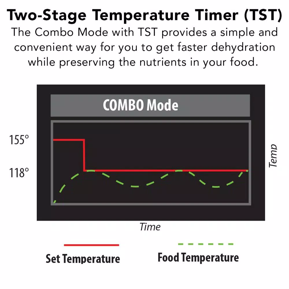 - World’s first dehydrator with a maximum temperature of 167°F, operational range of 77°F to 167°F