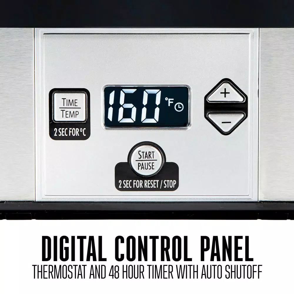 - Digital control panel features 48 hour timer with auto shutoff and adjustable thermostat (100°F -160°F / 38°C – 71°C)