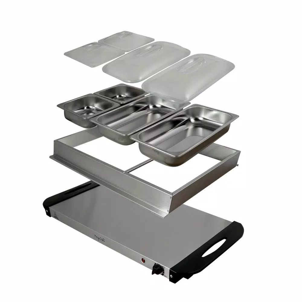 - Healthy serving: with stainless steel food containers and a stainless steel base warming tray, you’ll have piece of mind knowing that your meals are being served with restaurant level quality.