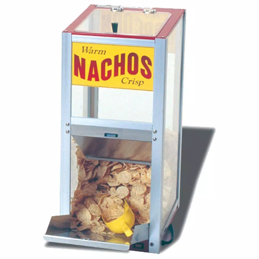 Stainless steel warming deck has a heating element underneath to keep all of the product in the cabinet. Not just the top – warm and fresh for hours. Easy-to-clean surfaces, just wipe with a damp cloth. Sturdy stainless steel and aluminum frame and tempered glass side panels. Perfect for popcorn, nacho chips or peanuts – graphics for all are included.