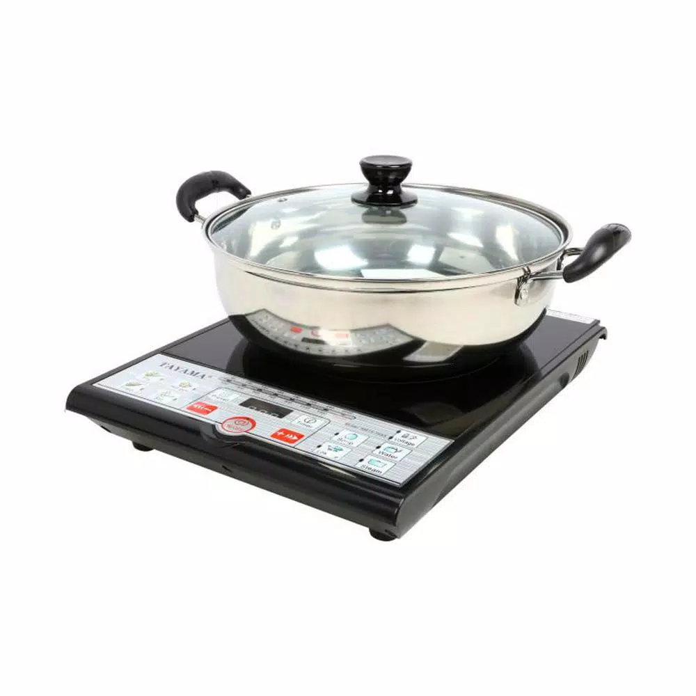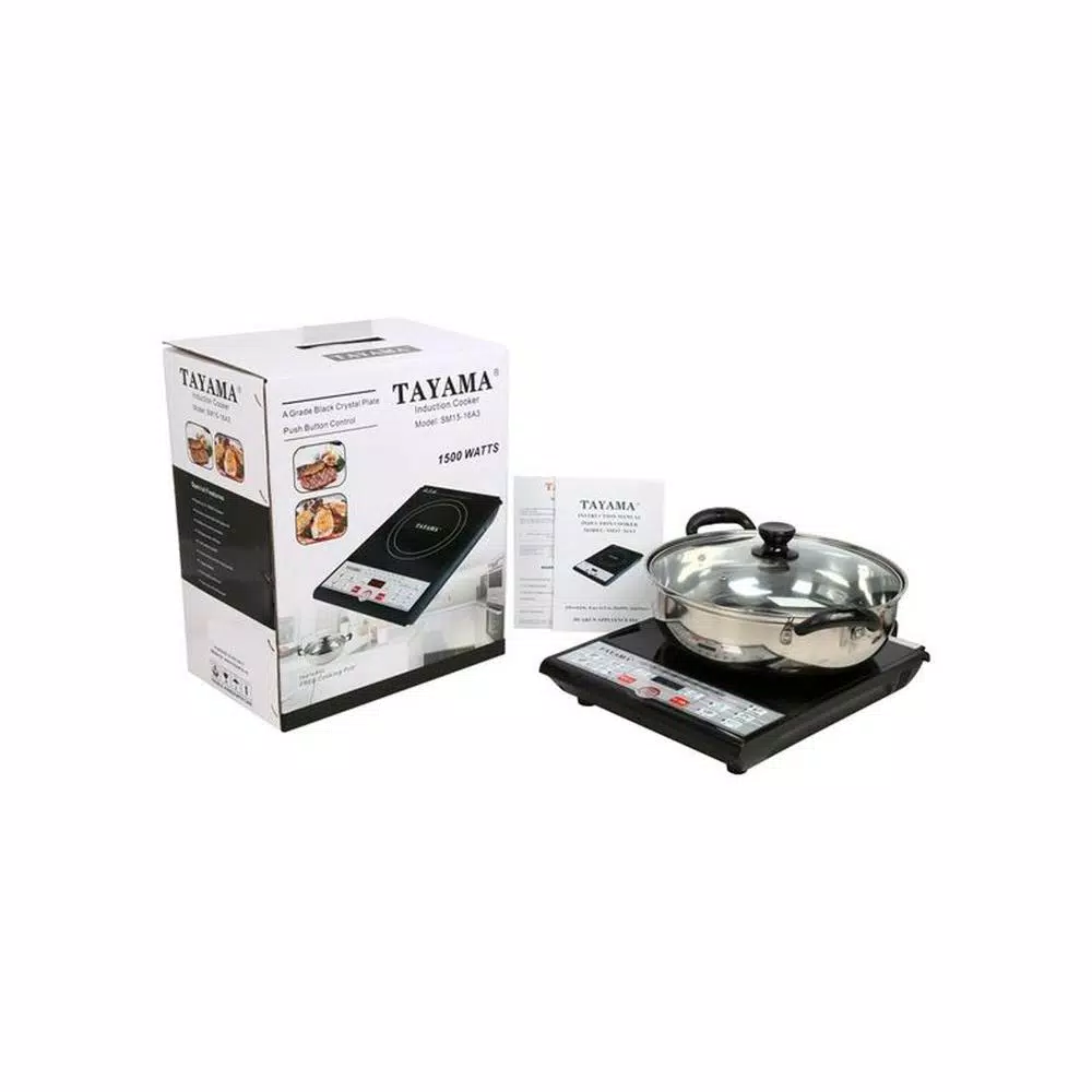 Tayama Induction Cooker 1500-Watt with free cooking pot. Induction cooking uses less energy and provides practically instant heat and since there are no open flames or hot coils, is safer to use than conventional burners. It allows for instant control of cooking energy for precise cooking control. Induction cooktops are designed to be used with ferromagnetic material like cast iron, steel, enameled cast iron, enameled steel or stainless steel. If a magnet sticks to your cookware, it will work on an induction cooktop. When a ferromagnetic cookware is placed on the ceramic surface, currents are induced in the cookware and instant heat is generated due to the resistance of the pan. The magnetic properties of the steel in the cookware will concentrate the induced current and generate heat. Once cookware is removed, all molecular activity ceases. Heat is generated at the cookware only so the cooktop stays cool. Will not work with aluminum, copper or glass cookware. ETL certified.