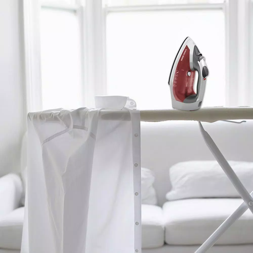 Blast away tough wrinkles with the BLACK+DECKER Stainless Steel Cord Reel Iron. The variable steam control and fine spray mist combine to give you just the right amount of power and moisture to take care of any garment. The retractable cord reel makes for fast and easy storage. Plus, the red casing adds a fun, distinctive look to this trusty iron.