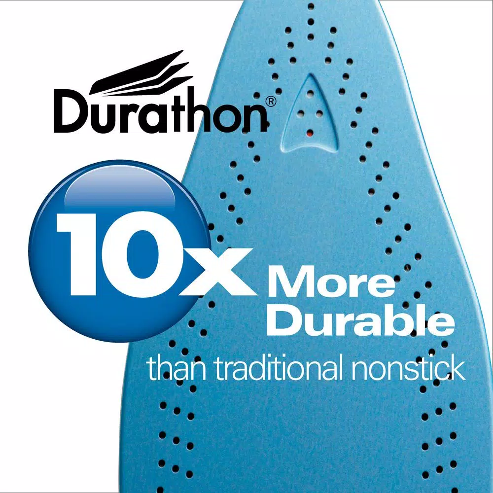 Hamilton Beach Durathon Soleplate Iron with cord wrap. Durathon is a finish 10x more durable than stainless steel, ceramic and traditional non-stick. Durathon is an aluminum coated soleplate coated with two layers of ceramic and then a nonstick top coat.
