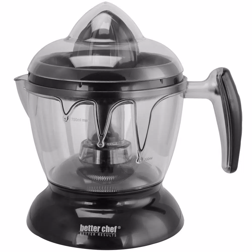 Freshly squeezed juice is just a spin away! The Better Chef 25-oz. Citrus Juicer features a dual-purpose, self-reversing cone that ensures maximum juice extraction from large and small citrus! Bring this juicer home today!