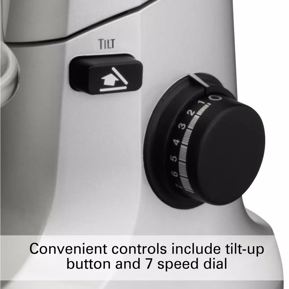 Hamilton Beach Stand Mixer Hands-free mixing with complete bowl coverage Built for a variety of batters and mixes, this Hamilton Beach Stand Mixer can do everything from whip delicate meringues to mix sticky bread dough. The powerful 300 watt motor can handle the thickest of ingredients, including those peanut butter chocolate chip cookies your family devours. And the best part is, you never have to scrape the bowl or hand-mix at the end – the planetary mixing action rotates the beaters around the entire bowl, for even and complete mixing. Seven speeds lets you go from a slow stir to a fast mix, with exact control at each one. Plus, a helpful guide at the mixer’s top lets you know which speed to use for various mixing methods. Nonslip feet keep the mixer still while in use, and the splatter shield guards against messy drips, drops and spills. Attachments include a flat beater, dough hook and whisk. All attachments, as well as the stainless steel 4-quart mixing bowl, are dishwasher safe for fast cleanup.