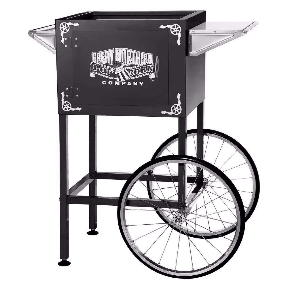 This cart is the perfect match for our Roosevelt 8 oz. popcorn bar style popper. It features 18 in. ball bearing wheels for smooth mobility. This cart fits popcorn poppers with a base size of 17.5 in. x 14.75 in.