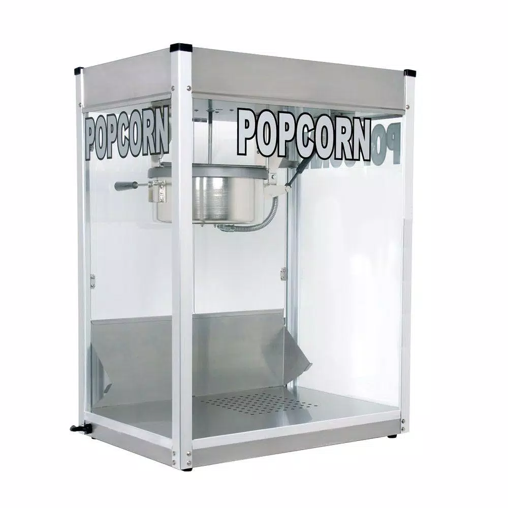 - Presentation lamp the inside of the popcorn machine cabinet is illuminated by a 50-Watt R20 lamp, this miniature flood lamp is ideal for highlighting the popped corn for added impulse sales, the lamp also provides light for added safety and convenience for the popcorn machine’s operator