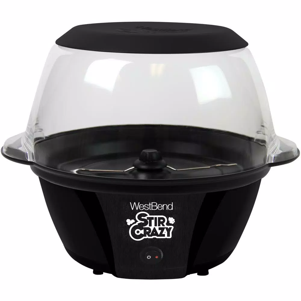 The West Bend Stir Crazy Popcorn Popper is a convenient and efficient way to make tasty popcorn from home. It has its own built-in butter well with improved butter melting and a motorized stirring rod to evenly coat your snacks. This electric popcorn holder provides heat-resistant handles for improved safety and convenience. Its base is also heat-resistant to protect your counter tops.
