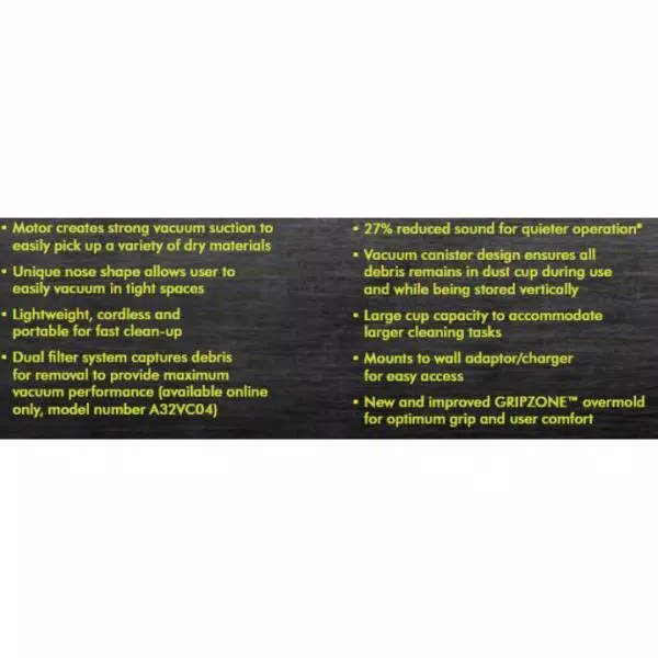 - Lightweight, cordless, and portable for fast clean-up