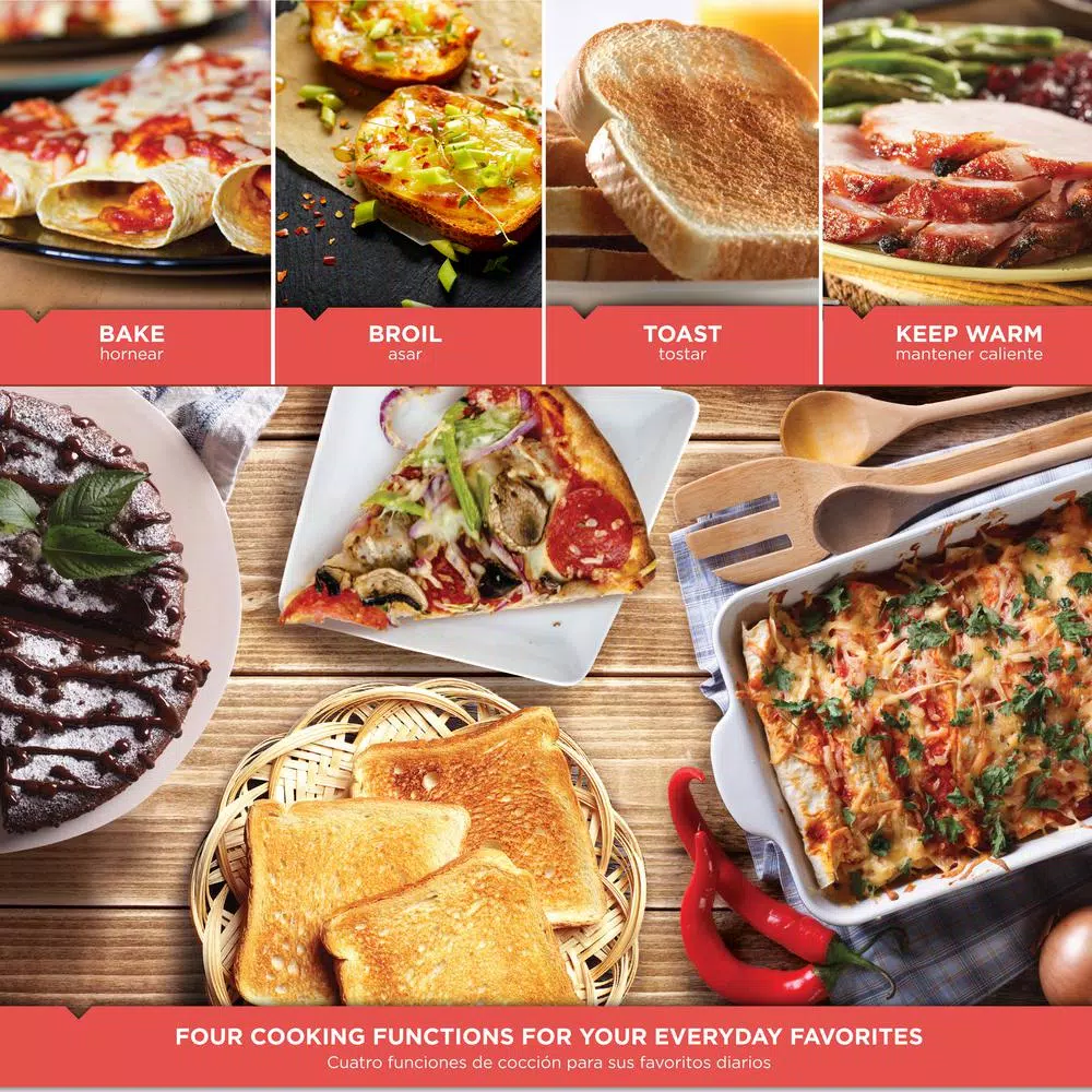 - Removable Crumb Tray – Keeps counters clean and makes it easy to remove crumbs before they burn in the bottom of the toaster oven.
