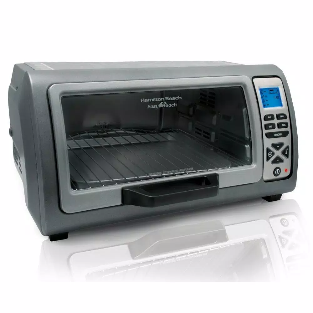 You won’t find a design like the Hamilton Beach Easy Reach Toaster Oven with Roll-Top Door anywhere else. Its unique and large opening make food easy to reach and since the door opens above the oven, it frees up your countertop space in front. Best of all, it’s easy to keep clean because food can’t spill on the door.