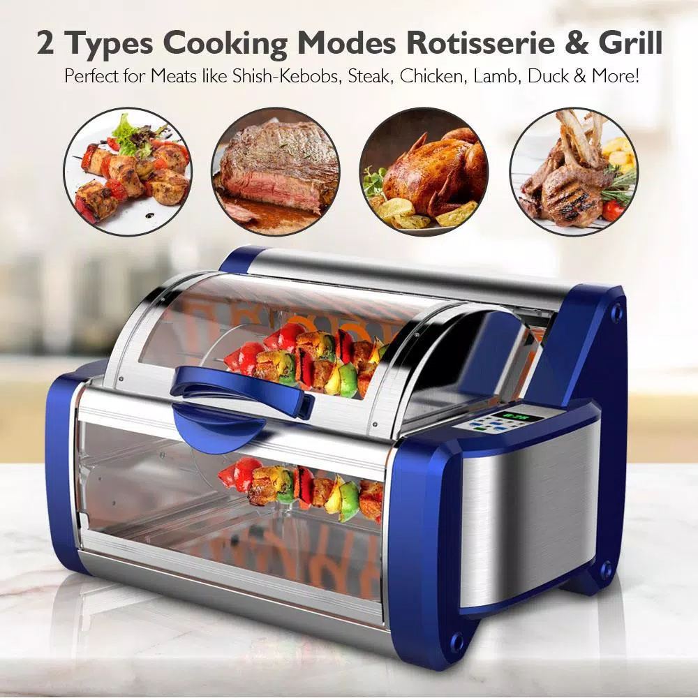 - (2) Selectable Cooking Modes: Rotisserie & Grill