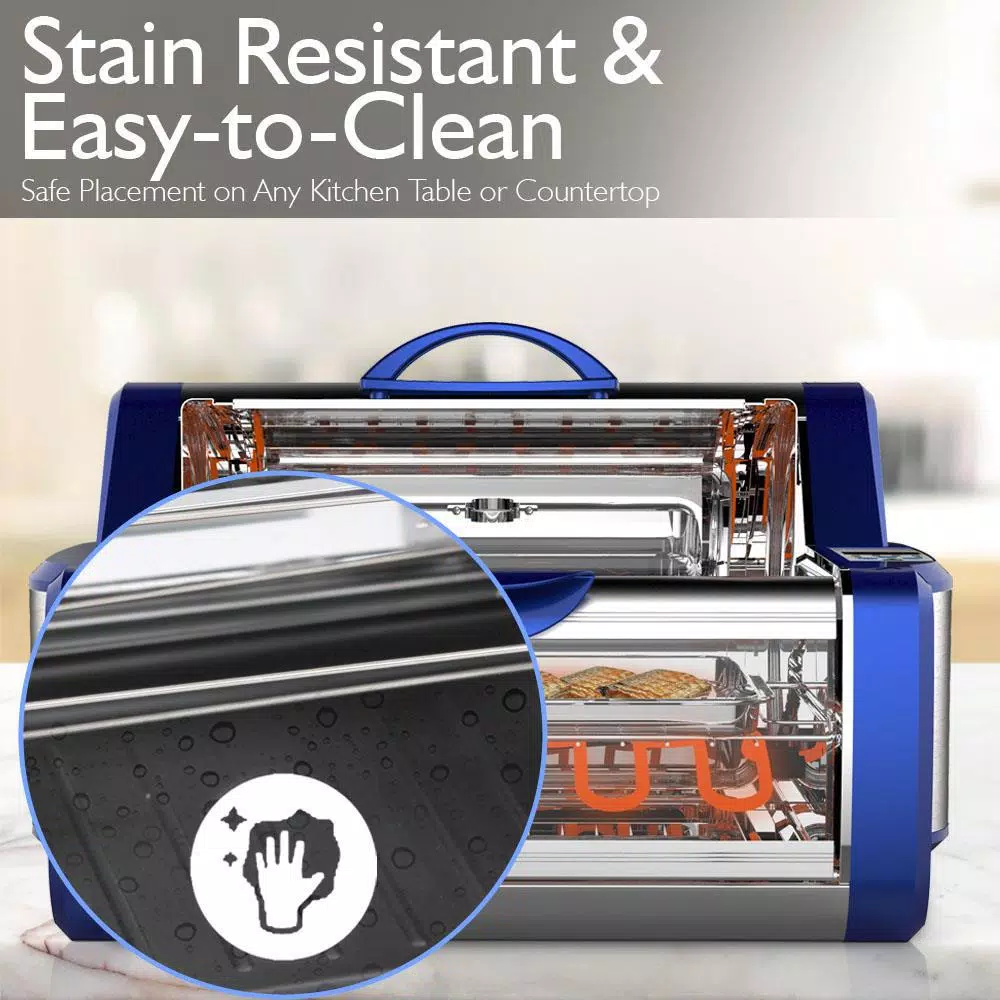 NutriChef was created on the principle that healthy home cooking should be attainable to all, regardless of skill level and economic status. Starting in 2014, we noticed the disconnect in our lives and in the lives of those around us. We were so busy, always rushing forward, and our health and personal lives suffered. We needed to find some way to slow down and put our health first, all without sacrificing convenience or taste. Could we somehow create healthier versions of our favorite foods, easily in our own kitchens? The answer was a resounding yes, and NutriChef was born. What’s in the Box: – Countertop Oven – Rotisserie Spit and Forks – (7) Meat Skewers – Grill Rack – Food Basket – Drip Tray Technical Specs: – High-Powered Heating Element: 1200 Watt – Total Capacity: 22+ Quarts – Max. Temperature Reached: Up to 450 °F (232?) – Max. Time Setting: Up to 4 hours – Construction Material: Stainless Steel, Tempered Glass, Engineered PBT – Power Cable Length: 3.3’ ft. – Power: 120V – Unit Dimensions (L x W x H): 17.4’’ x 13.07’’ x 10.20’’ -inches